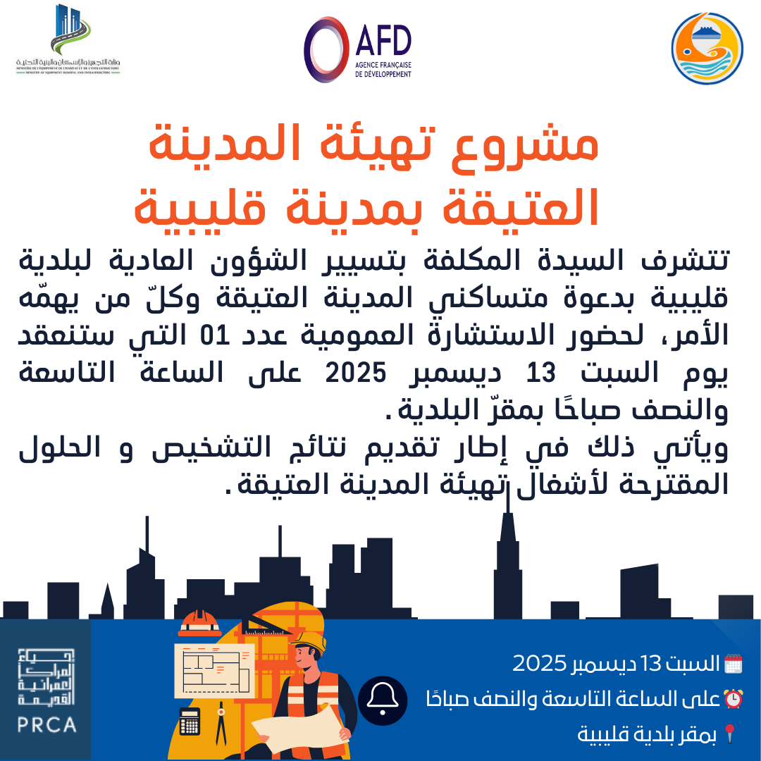 La chargée de la gestion des affaires courantes de la Municipalité de Kélibia a l’honneur d’inviter les habitants du centre-ville ancien, ainsi que toute ...